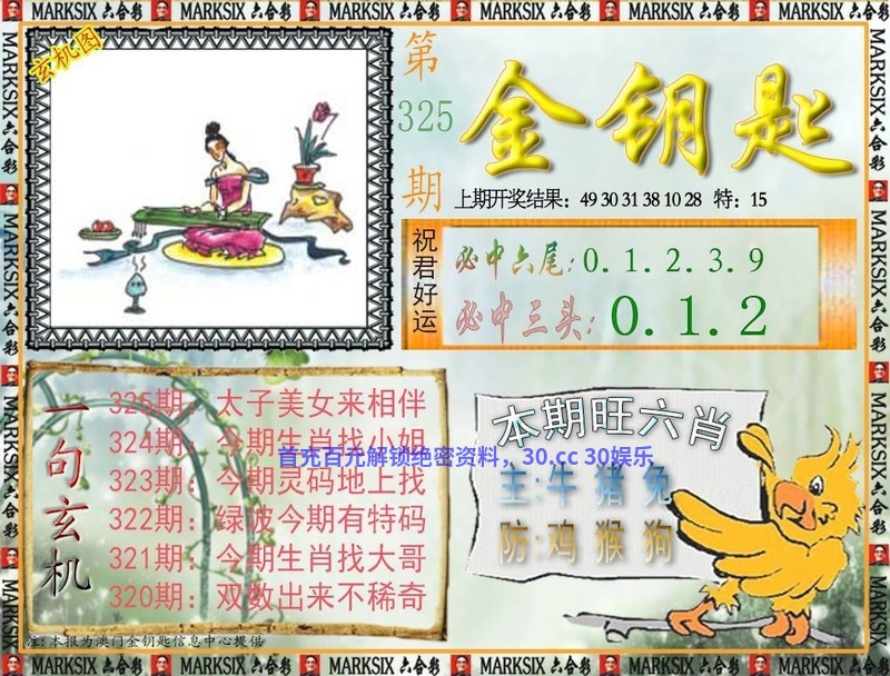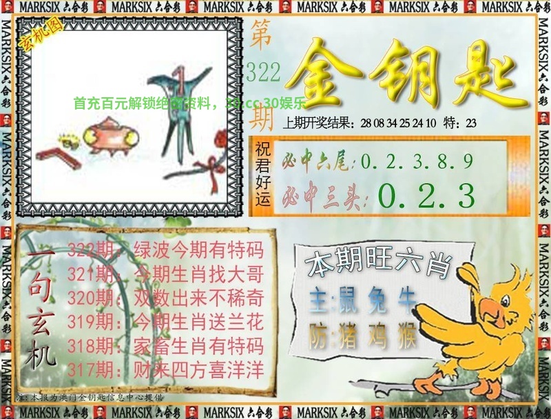 324期一字記曰:【底】 面对威脅,居安思危,几处尘生随候骑。一眼关七,望清底细,东南苍翠何崔嵬。 玄机测字《赠》 解:日暮垂鞭共归去:日暮解兔龙蛇马羊猴。 综合取肖:兔龙蛇马羊猴 |